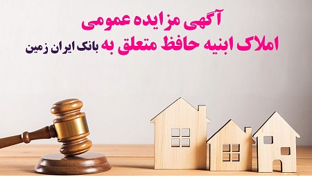 شرکت پشتیبانی و فروش ابنیه حافظ (سهامی خاص) با نمایندگی از بانک ایران زمین در نظر دارد املاک مازاد این بانک را به شرح فایل (پیوست یک) با وضع موجود و به صورت نقدی از طریق مزایده عمومی به فروش رساند.