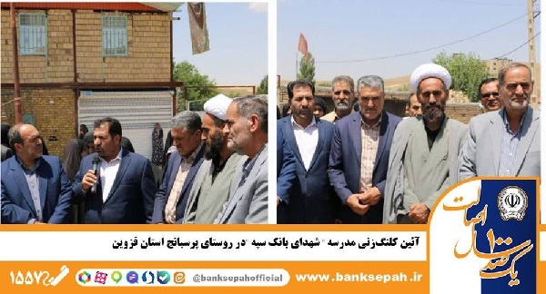 به گزارش فراسو به نقل از پایگاه اطلاع رسانی بانک سپه، آئین کلنگزنی مدرسه «شهدای بانک سپه» در روستای پرسبانج استان قزوین با حضور حجت الاسلام و المسلمین موسوی نماینده ولی فقیه در شهرستان آوج، عباسپور نماینده مردم بوئین زهرا، آوج و آبگرم در مجلس شورای اسلامی، حسین زندی مقدم مدیر شعب بانک سپه منطقه قزوین و جمعی از مدیران و مسئولین این شهرستان برگزار شد.