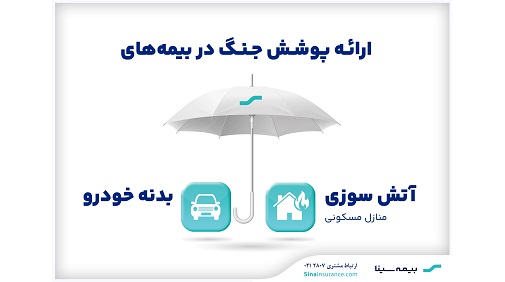 شرکت بیمه سینا، پوشش «جنگ» را در بیمههای آتش سوزی منازل مسکونی و بدنه اتومبیل ارائه میدهد.