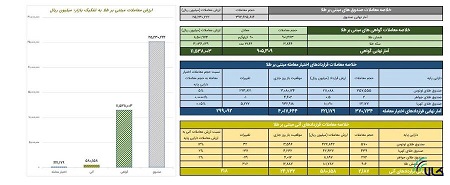 در قراردادهای اختیار معامله مبتنی بر طلا نیز ۳۷۰ هزار و ۱۷۹ قرارداد به ارزش ۲۲.۱ میلیارد تومان دادوستد شد. در قراردادهای اختیار معامله صندوق طلای لوتوس با ۵ درصد بیشترین نسبت حجم معاملات قراردادهای اختیار معامله به حجم معاملات دارایی پایه را داشت.