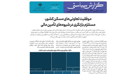 گزارش سیاستی نهم در حوزه تعاون، کار و رفاه اجتماعی با عنوان موفقیت تعاونیهای مسکن کشور، مستلزم بازنگری در شیوه های تأمین مالی منتشر شد.