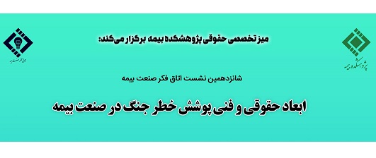شانزدهمین نشست اتاق فکر صنعت بیمه با عنوان «ابعاد حقوقی و فنی پوشش خطر جنگ در صنعت بیمه» از ساعت ۹ تا ۱۱ روز یکشنبه ۲۹ تیرماه ۱۴۰۴ به صورت برخط از طریق سامانه مدیریت یادگیری پژوهشکده بیمه برگزار میشود.