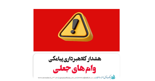 ضروری است مشتریان گرامی برای دریافت هرگونه وام، صرفاً از طریق سامانه های رسمی و مورد تایید این بانک از جمله پیشخوان مجازی رسالت، همراه بانک، اینترنت بانک و همچنین پلتفرم اِم رسالت به آدرس www.mresalat.ir مراجعه نمایند و از اعتماد به پیامهای غیرمعتبر و ناشناس در فضای مجازی خودداری ورزند تا از بروز خسارات مالی جلوگیری شود.