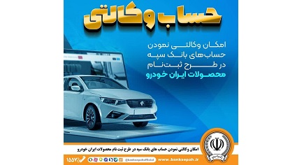 مشتریان گرانقدر بانک سپه میتوانند برای وکالتی نمودن حسابهای خود و شرکت در طرح ثبتنام مردادماه ۱۴۰۴ محصولات ایرانخودرو بهمنظور خرید محصولات شرکت، بهصورت غیرحضوری از طریق ib.banksepah.ir و همراه بانک سپه اقدام کنند.