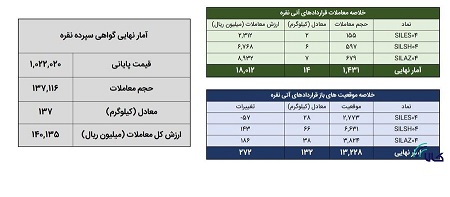 به گزارش فراسو، خلاصه معاملات بازار نقره در روز گذشته نشان میدهد که در این روز ۱۳۷ هزار و ۱۱۶ گواهی معادل ۱۳۷ کیلوگرم شمش نقره به ارزش ۱۴ میلیارد تومان دادوستد شد.
