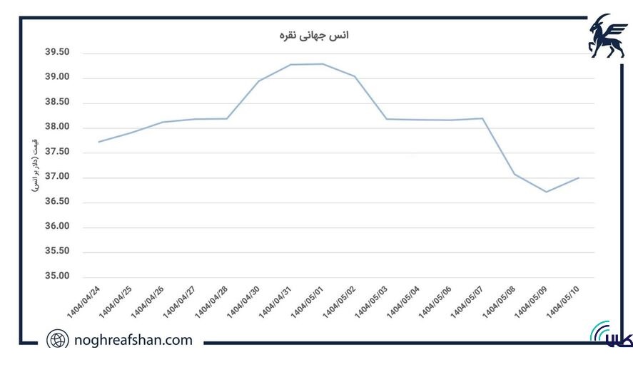 تحلیل هفتگی نقره در بازه زمانی ۶ تا ۱۰ مرداد ماه ۱۴۰۴ (۲۸ جولای تا اول آگوست ۲۰۲۵) نشان می دهد، نقره جهانی که هفته را با قیمت ۳۸.۱۸ دلار در هر اونس آغاز کرده بود، با افت قیمت در اواسط هفته مواجه شد و در روز پنجشنبه به قیمت ۳۶.۷ دلار رسید، اما مجدد به کانال ۳۷ دلار برگشت و هفته را با قیمت ۳۷.۰۲ دلار به پایان رساند.