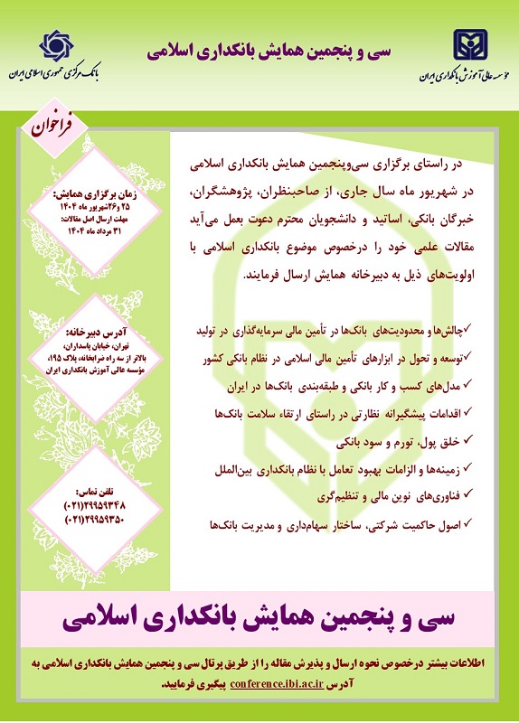 لازم به ذکر است، سیوپنجمین همایش بانکداری اسلامی ۲۵ و ۲۶ شهریور ماه سالجاری در ساختمان باغ موزه عباسآباد بانک مرکزی برگزار میشود.