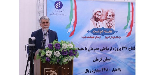 بهرهبرداری از این تعداد پروژه ارتباطی استان کرمان با اعتبار چهار هزار و ۴۸۰ میلیارد ریال به مناسبت هفته دولت انجام شد.