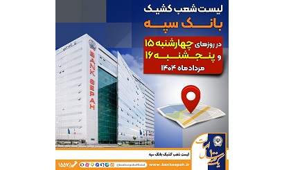 هموطنان گرامی میتوانند لیست شعب کشیک بانک سپه در روز چهارشنبه ۱۵ مردادماه را از اینجا و در روز پنجشنبه ۱۶ مردادماه را از اینجا مشاهده کنند.