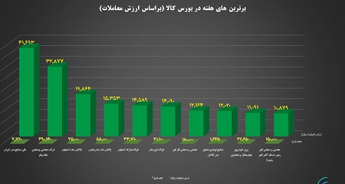 به گزارش فراسو، برترین های بورس کالای ایران درهفته منتهی به ۱۷ مرداد ماه براساس ارزش فروش شرکت ها در بازار فیزیکی به شرح زیر است: