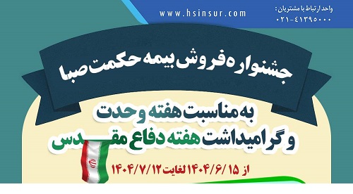 شرکت بیمه حکمت صبا به مناسبت گرامیداشت هفته دفاع مقدس و هفته وحدت ، جشنواره ویژه‌ای را با تخفیفات ویژه در تمامی رشته‌های بیمه‌ای برگزار می‌کند. این طرح فروش از تاریخ ۱۵ شهریور ۱۴۰۴ آغاز شده و تا ۱۲ مهر ۱۴۰۴ ادامه خواهد داشت.