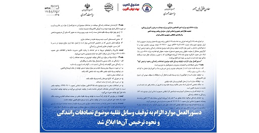 ابلاغ دستورالعمل موارد الزام به توقیف وسایل نقلیه موضوع تصادفات رانندگی و نحوه ترخیص آن‌ها