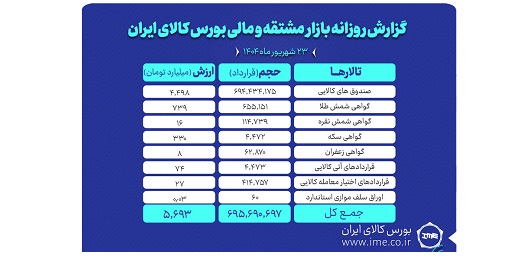 ارزش معاملات 23 شهریور بازار مشتقه و مالی بورس کالا ۵.۶ همت شد