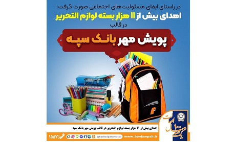 اهدای بیش از 11 هزار بسته لوازم التحریر در قالب طرح “پویش مهر بانک سپه”