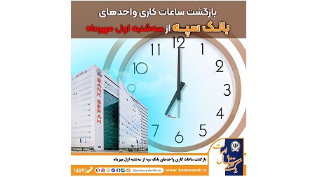 ساعت کاری واحدهای بانک سپه، بر اساس بخشنامه سازمان اداری و استخدامی کشور و اعلام شورای هماهنگی بانک ها به حالت قبل بازمی گردد.