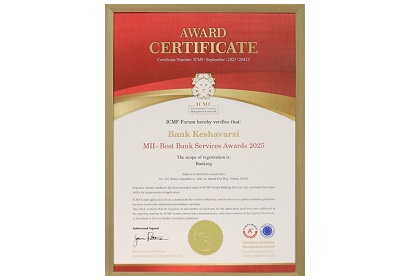 بانک کشاورزی موفق به دریافت جایزه «بهترین خدمات بانکی سال ۲۰۲۵» از سوی مجمع بین‌المللی مدیریت خلاق (ICMF)  شد.