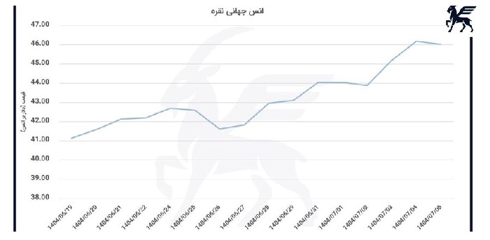 تحلیل هفتگی نقره در بازه زمانی ۳۱ شهریور تا ۴ مهر ماه ۱۴۰۴ (۲۲ تا ۲۶ سپتامبر ۲۰۲۵) نشان می دهد، انس جهانی نقره که هفته قبل را با قیمت ۴۴.۱ دلار شروع کرد، در کل هفته روندی یکپارچه صعودی داشت و با شکستن کانال قیمت ۴۶ دلار در روز پنجشنبه، نزدیک سقف قیمتی ۱۴ ساله خود قرار گرفت و در نهایت با قیمت ۴۶.۰۴ دلار هفته را به پایان رساند. بیشترین قیمت نقره در طول تاریخ در سال ۲۰۱۱ با قیمت حدود ۴۶.۸۲ دلار بوده است.