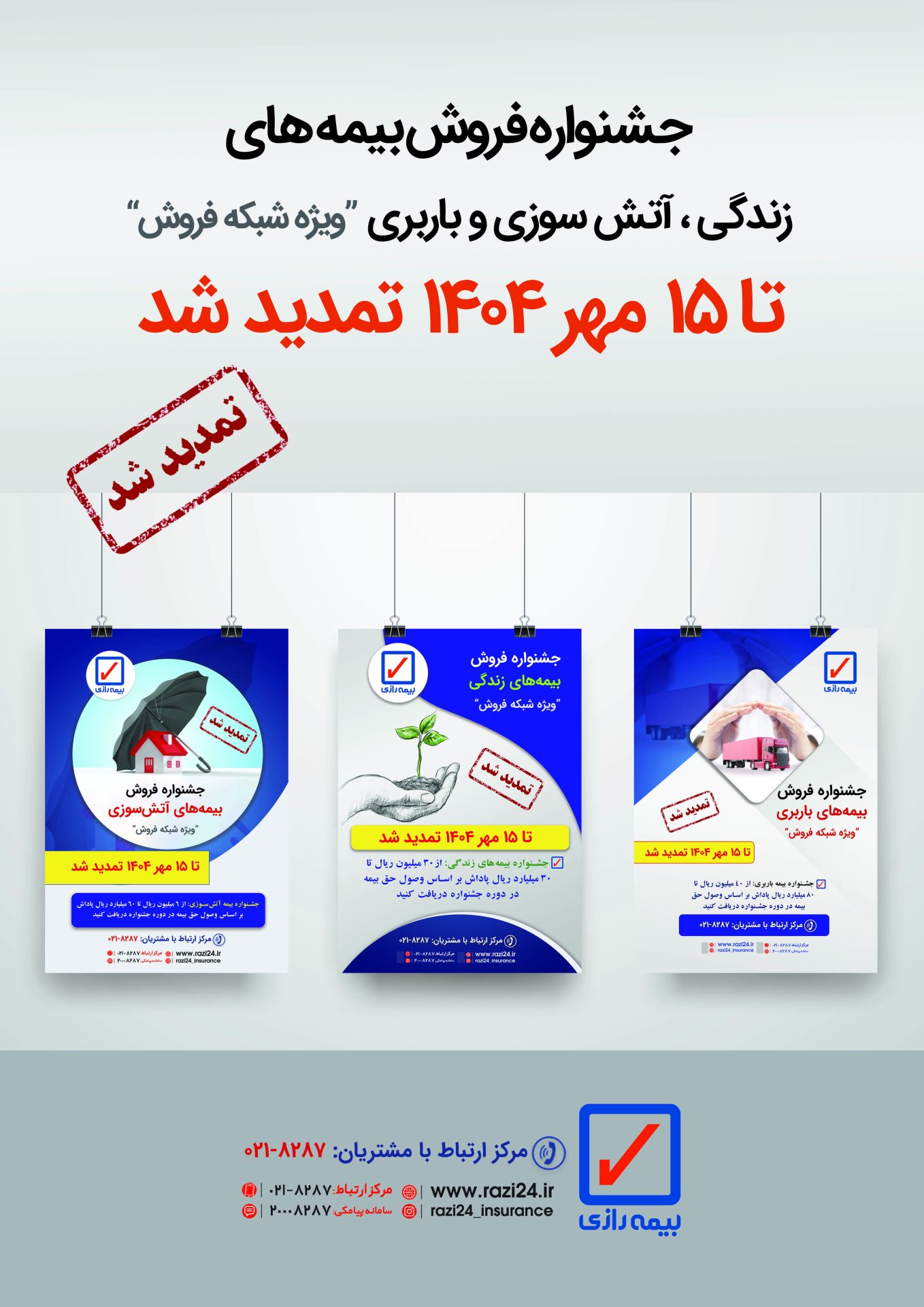 چهارمين جشنواره فروش شرکت بیمه رازی که با استقبال گسترده نمايندگان مواجه شده بود، تا پايان روز 15 مهرماه 1404 تمديد شد.