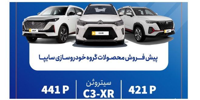 به گزارش فراسو به نقل از سایپانیوز، پیش‌فروش سه محصول خودروهای ۴۴۱P، ۴۲۱P و همچنین سیتروئن C3-XR که برای نخستین بار به‌صورت وارداتی عرضه می‌شود، در قالب سه شیوه «متقاضیان عادی»، «حمایت از خانواده» و «جایگزینی خودروهای فرسوده» در دسترس متقاضیان قرار می‌گیرند. بر اساس برنامه‌ریزی انجام شده، تحویل این خودروها در هفته چهارم اسفند سال جاری خواهد بود.