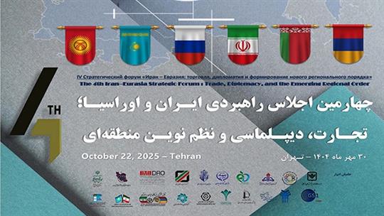 «چهارمین نشست راهبردی ایران و اوراسیا؛ تجارت، دیپلماسی و نظم نوین منطقهای» با حمایت نهادهای حاکمیتی و همراهی اتاق بازرگانی تهران، در تاریخ ۳۰ مهرماه ۱۴۰۴ در تهران برگزار میشود.