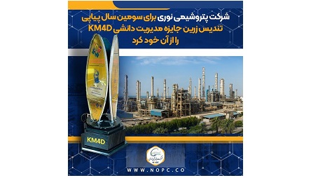 شرکت پتروشیمی نوری توانست برای سومین سال پیاپی، در بین تمامی شرکتهای بزرگ، هلدینگهای معدنی، پتروشیمی، پالایشگاهی و… تندیس زرین و عالیترین نشان جایزه بینالمللی مدیریت دانشی (KM4D) و بالاترین امتیاز تاریخ این مسابقات در هشت دوره برگزاری آن را، از آن خود کند.
