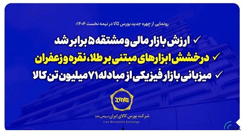 آمار ششماهه نخست سال ۱۴۰۴ نشان میدهد بورس کالای ایران توانسته بازار مالی و مشتقه خود را براساس نقشه راه و چشمانداز پیشبینی شده، گسترش دهد. در نیمه نخست امسال ارزش بازار مالی و مشتقه بورس کالا با جهش ۴۳۵ درصدی نسبت به نیمه نخست سال گذشته، بیش از ۵ برابر شد و در آمار قابل توجه، سهم بازار مالی و مشتقه به بیش از ۳۶ درصد از ارزش کل معاملات بورس کالا رسیده است.