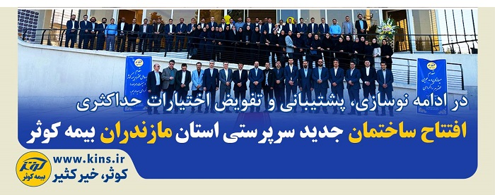 ساختمان جدید سرپرستی استان مازندران بیمه کوثر با حضور مدیرعامل، مدیران ستادی و استانی، مدیران ساتا، کارگزاران، نمایندگان و شبکه فروش در شهر ساری افتتاح شد.