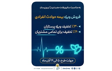 به مناسبت سالروز ولادت حضرت زینب کبری (س) و گرامیداشت روز پرستار، شرکت بیمه پارسیان در اقدامی قدردانانه از تلاش‌ها و فداکاری‌های پرستاران کشور، طرح ویژه‌ای را برای ارائه تخفیف در بیمه حوادث انفرادی اعلام کرد.