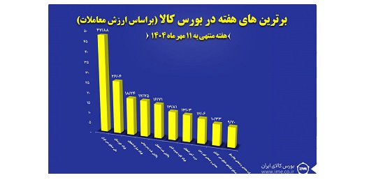 به گزارش فراسو، برترین های بورس کالای ایران در هفته منتهی به ۱۱ مهر ماه براساس ارزش فروش شرکت ها در بازار فیزیکی به شرح زیر است: