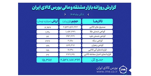 ارزش معاملات بازار مشتقه و مالی بورس کالا از ۱۵ همت گذشت
