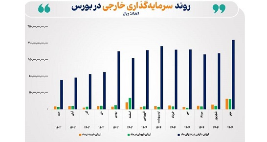 ارزش دارایی سرمایهگذاران خارجی در بورس، در پایان مهر امسال با رشد ۱۳۶ درصدی از مرز ۲۱ همت عبور کرد.