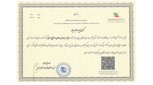گواهی تایید اعتبار جایزه بهره وری معادن و صنایع معدنی برای دوره 5 ساله از سوی سازمان ملی بهره‌وری صادر شد.