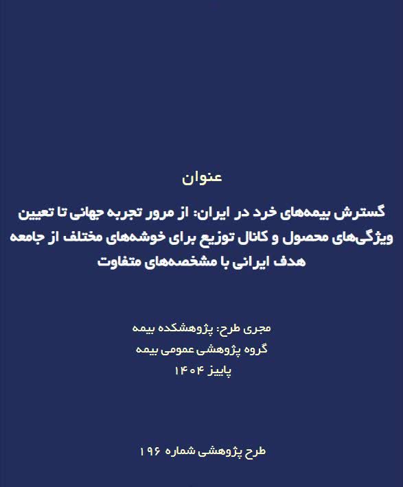 پژوهشکده بیمه با انتشار گزارشی از یافتههای طرح پژوهشی، ابعاد گسترش بیمههای خرد در ایران را بررسی کرد؛ گزارشی که با تکیه بر تجربیات جهانی و مطالعات داخلی، به تحلیل نقش این نوع بیمهها در ارتقای ضریب نفوذ، حمایت از اقشار کمدرآمد و اصلاح ساختار اقتصادی کشور پرداخته است.