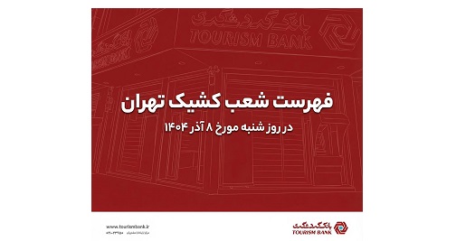 به گزارش فراسو به نقل از روابط عمومی بانک گردشگری، با توجه به اعلام وضعیت اضطرار آلودگی هوا در تهران و اجرای دستورالعمل مربوط به کاهش ساعات کاری دستگاهها، شعب کشیک بانک گردشگری در روز شنبه ۸ آذرماه ۱۴۰۴ به شرح زیر از ساعت ۸ تا ۱۲ آماده ارائه خدمت به مشتریان محترم هستند:
