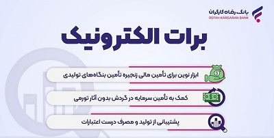 برات الکترونیک در راستای حمایت از تولید و افزایش اطمینان از مصرف اعتبار در محل مورد نیاز، رفع موانع پولی رونق تولید و انتقال ارزش در زنجیرههای تولید و تامین و مدیریت نقدینگی و ایجاد اطمینان در تامین مالی زنجیره تولید بنگاههای اقتصادی منتشر میشود.