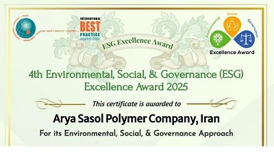 به گزارش فراسو به نقل از روابط عمومی شرکت پلیمر آریاساسول، گواهینامه‌های چهارمین دوره جایزه تعالی پایداری (ESG) مبتنی بر حوزه­‌های محیط زیست، اجتماع و حاکمیت سال 2025 تحت نظارت مسابقه برترین تجارب بین‌المللی (IBPC) (IBPC 4th Environment, Social, Governance Excellence Award 2025) برای آریاساسول صادر شد.