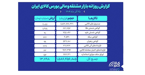 روز گذشته در بازار مشتقه و مالی بورس کالای ایران بالغ بر یک میلیارد و ۵۸۶ میلیون قرارداد به ارزش ۱۳هزار و ۷۹۸ میلیارد تومان منعقد شد.