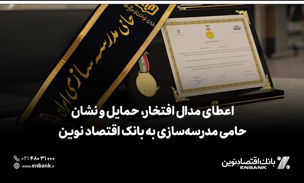 مدال افتخار، حمایل و نشان حامی مدرسه‌سازی توسط سازمان نوسازی، توسعه و تجهیز مدارس کشور و جامعه خیرین مدرسه‌ساز کشور به بانک اقتصادنوین اعطا شد.