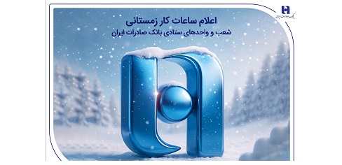 ساعات کار زمستانی شعب و واحدهای ستادی بانک صادرات ایران، با هدف مدیریت بهینه مصرف انرژی و همسویی با سیاستها و اهداف کلان دولت و دستگاههای اجرایی کشور، از ابتدای دیماه سال جاری تا نیمه فروردینماه سال ۱۴۰۵ تعیین و ابلاغ شد.