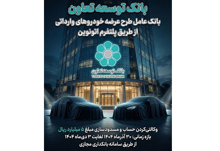 امکان ثبت‌نام در طرح عرضه خودروهای وارداتی با ارائه حساب وکالتی بانک توسعه تعاون فراهم شد