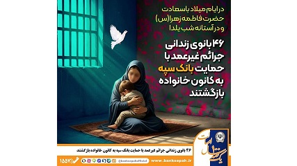 به مناسبت میلاد باسعادت حضرت فاطمه زهرا (س) و در آستانه شب یلدا، 46 نفر از زندانیان زن جرائم غیرعمد با حمایت مالی بانک سپه آزاد شدند.