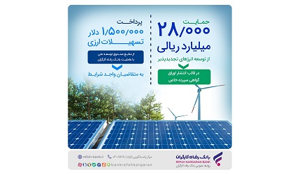 حمایت 28.000 میلیارد ریالی بانک رفاه کارگران از توسعه انرژی‌‌های تجدیدپذیر در سال جاری