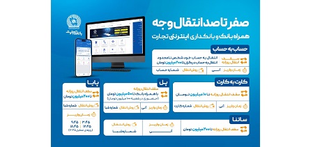 بانک تجارت با توسعه زیرساختهای بانکداری الکترونیکی و ارائه مجموعهای جامع از روشهای انتقال وجه، در قالب «همراه بانک تجارت» و «بانکداری اینترنتی»، تلاش کرده ضمن تامین امنیت، سرعت و در دسترس بودن مداوم، مبادلات مالی مشتریان خود را تسهیل کرده و رضایتمندی آنها را تا حد امکان افزایش دهد.