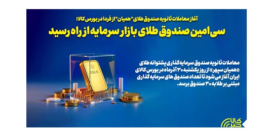 معاملات ثانویه صندوق سرمایهگذاری پشتوانه طلای «همیان سپهر» از روز یکشنبه ۳۰ آذرماه در بورس کالای ایران آغاز میشود تا تعداد صندوق های سرمایه گذاری مبتنی بر طلا به ۳۰ صندوق برسد.