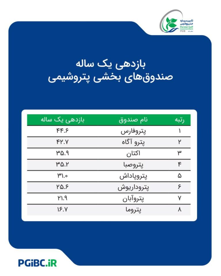 فراسو/ بر اساس بررسی ارزش خالص دارایی صندوقهای بخشی پتروشیمی در بازار سرمایه (منتهی به ۲۶ آذر ۱۴۰۴)، پتروفارس با مدیریت شرکت تامین سرمایه خلیج فارس با بازدهی ۴۴.۶ درصدی، برترین صندوق در یکسال گذشته بوده است.