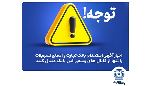 بانک تجارت در اطلاعیهای از مشتریان و هموطنان درخواست میکند تا هرگونه اخبار مرتبط با این بانک از جمله آگهی استخدام و اعطای تسهیلات را از طریق پایگاه اطلاعرسانی به نشانی tejaratbank.ir و شبکههای اجتماعی دنبال کنند.