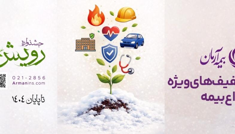 وی افزود: شرکت بیمه آرمان به مناسبت چهاردهمین سالروز تاسیس این شرکت در جشنواره رویش خود به مدت دو ماه از ۷ بهمن تا ۲۹ اسفند ماه در رشته های مختلف بیمه ای اقدام به عرضه انواع بیمه نامه میکند و از جوایز این جشنواره می توان به سفرخانوادگی به کیش اشاره کرد.
