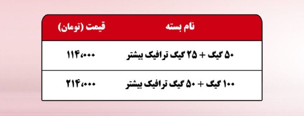 بسته ترافیکی ۱۰۰ گیگابایت + ۵۰ گیگابایت ترافیک هدیه