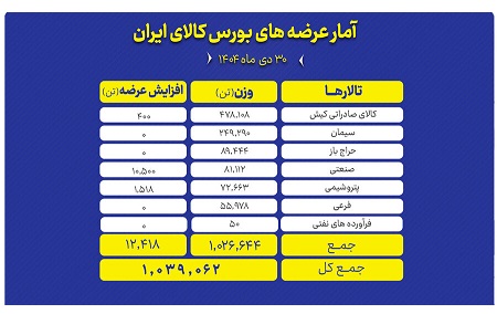 عرضه بیش از یک میلیون تن محصول در بورس کالا در آخرین روز دی ماه