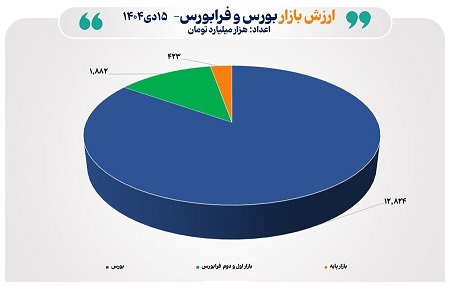 مجموع ارزش بازارهای سهام ایران، شامل: بورس، فرابورس و بازار پایه در ابتدای معاملات امروز سهشنبه ۱۶ دی ۱۴۰۴ از مرز ۱۵ هزار همت (هزار میلیارد تومان) عبور کرد.